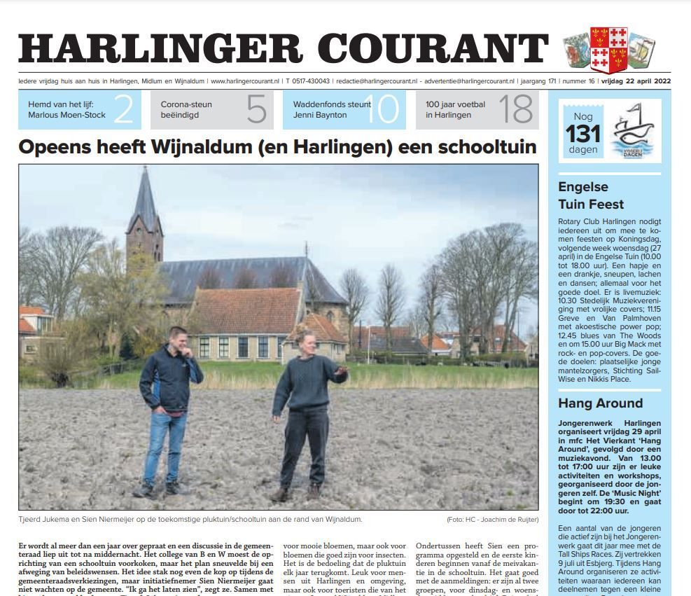 - 'Opeens heeft Wijnaldum (en Harlingen) een schooltuin' - 22-4-2022 - gepubliceerd in Harlinger Courant