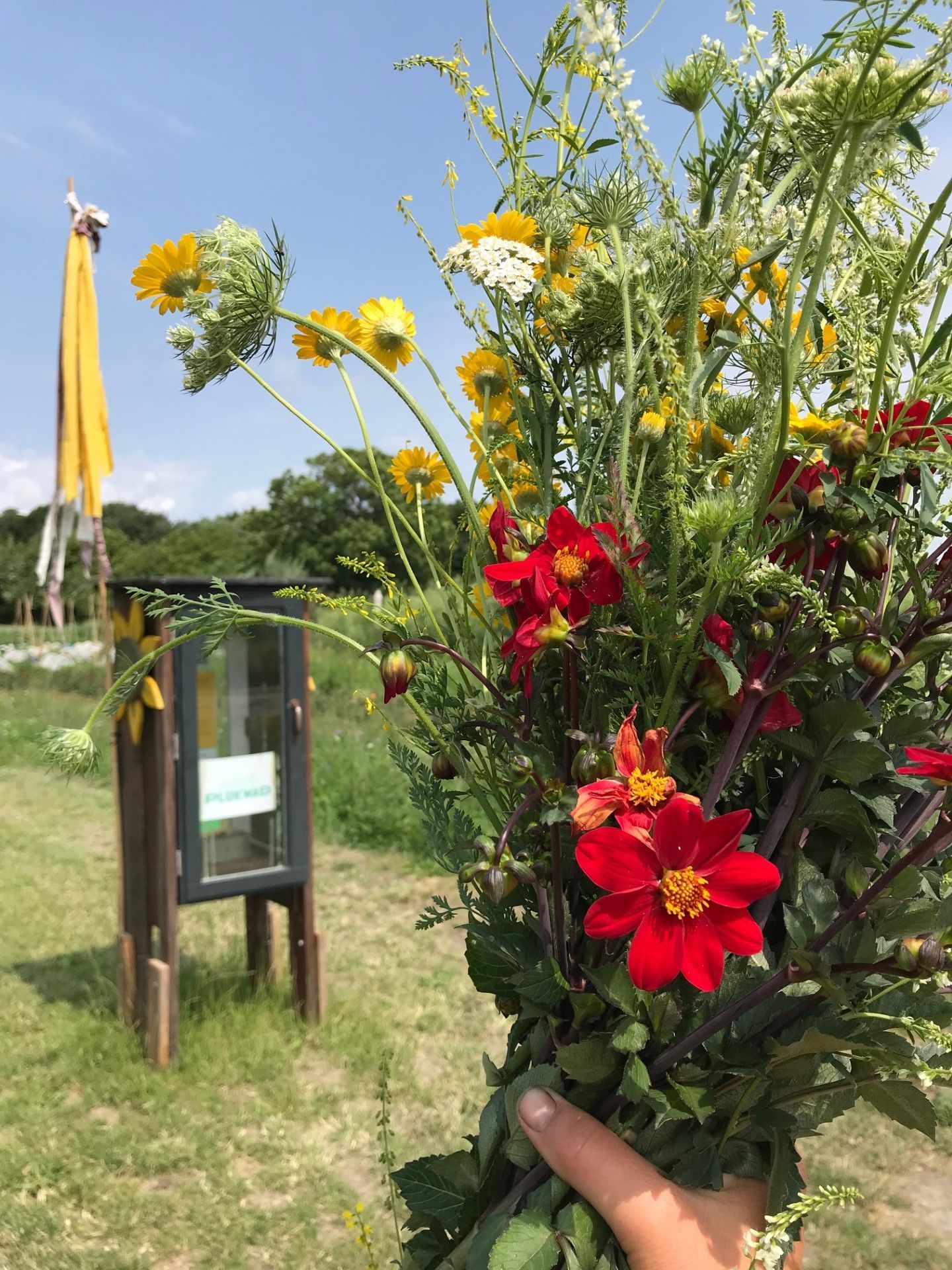 - We zaaien verschillende bloemenmengsels; zo creëren we een tuin met een ruime keus aan snijbloemen, die ook de biodiversiteit bevordert. Daarnaast hebben we een groot assortiment aan prachtige Dahlia`s.